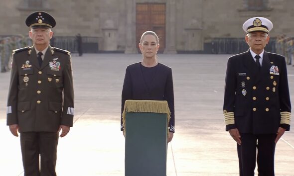 La presidenta de México, Claudia Sheinbaum Pardo, lideró la Ceremonia de Izamiento de la Bandera Nacional a media asta en...