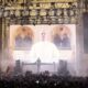 Un video en el que el papa León XIV aparece en una pantalla LED para dar una bendición virtual durante una rave a las puertas de...