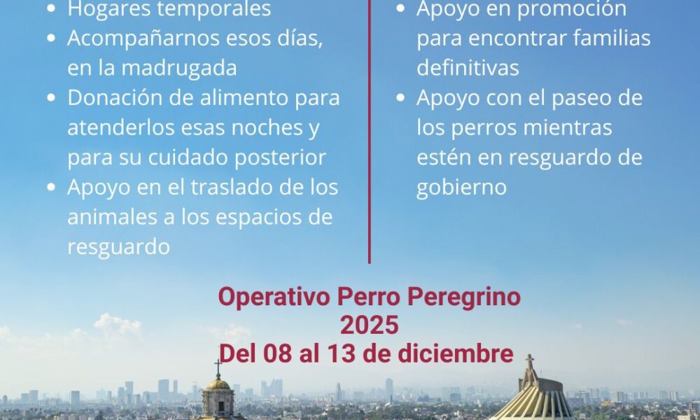 Del 8 al 13 de diciembre, la AGATAN desplegará un operativo integral para rescatar y resguardar a perros abandonados en la Basílica de Guadalupe. Buscan voluntarios...